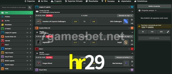 O hr29 oferece uma grande seleção de opções de apostas em e-sports com probabilidades competitivas